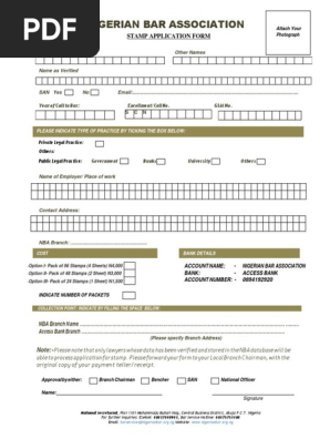 1 With its introduction it will give more credence to the rule of law that court processes cannot be franked with a corporate or business name but must be done in the name of a Lawyer whose name is on the Roll. The only requirement to be eligible is your proof of payment of the current annual practicing fee. Ensure that the data you add to the Nba Stamp And Seal Form is up-to-date and correct.